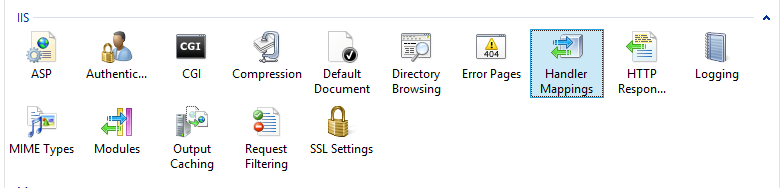 Para esto se debe verificar que dentro de Handler Mappings del IIS exista el Handler "svc-integrated-4.0"